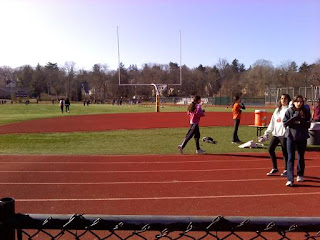 this morning katie and her fellow winter track team members held a fundraiser for haitan earthquake relief efforts. from 10 until noon they ran laps around the outdoor track, and also held a bake sale.